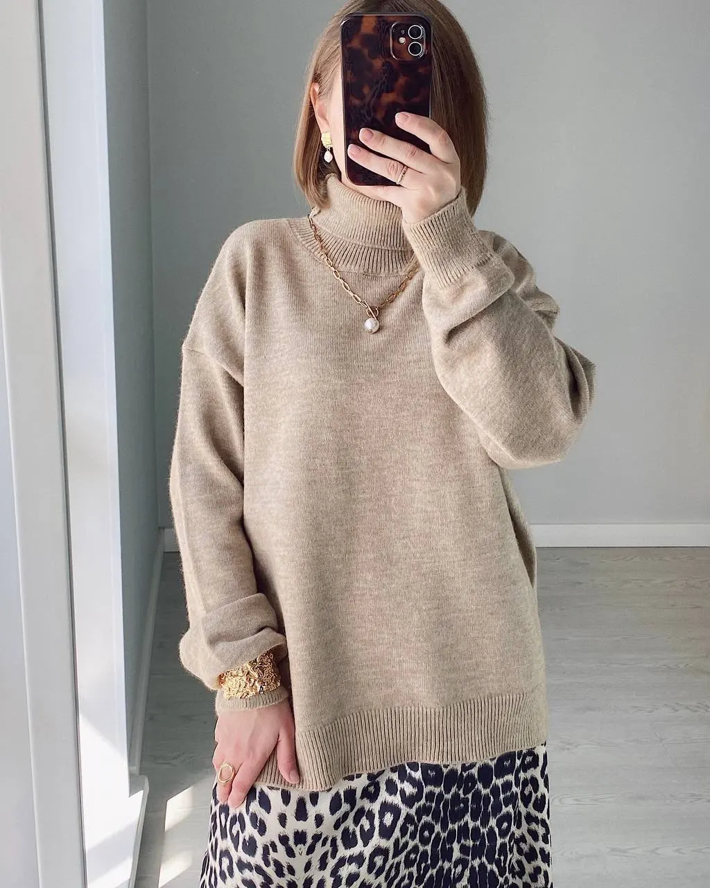 Pull Col Roulé Oversize en Cachemire – L’Élégance du Luxe au Quotidien